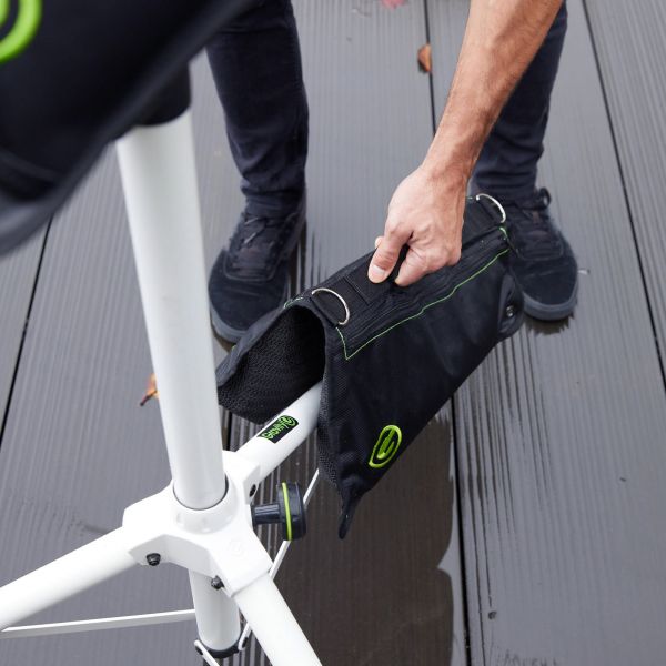 Sve je spremno i događaj može da počne – a onda neko slučajno obori stalak i nastaje problem. Da bi vredna oprema – mikrofoni, zvučnici, reflektori i drugo – ostala stabilna i sigurna, Gravity® u svojoj ponudi ima BG SB vreće za opterećenje – vreće koje se mogu puniti po želji i lako postavljaju na noge stativa.