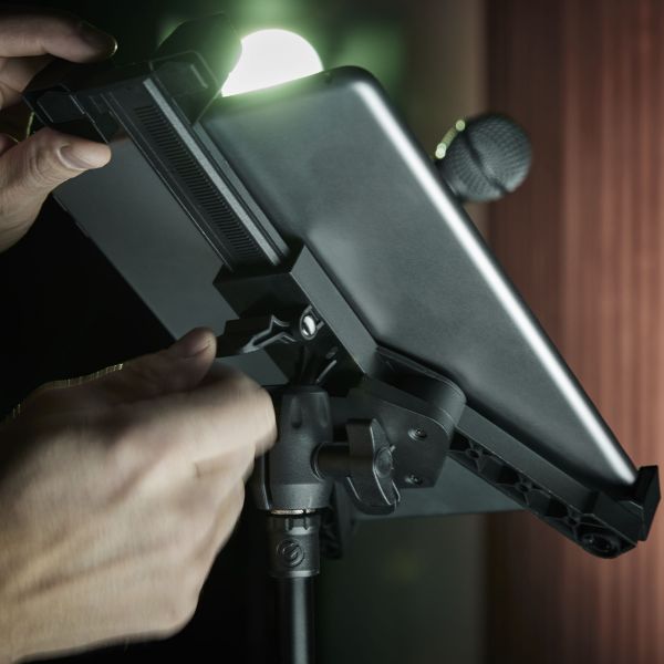 Pomoću ovog praktičnog dodatka možete montirati i fleksibilno pozicionirati sve standardne tablete (sa ekranima od 7,3" do 12,3") direktno na 5/8" navoj vašeg mikrofonskog stalka.