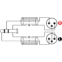 Kabel sa priključcima. 3.5mm 3 polni -> 2 x muški XLR 3 polni. Dužina 2 metra.